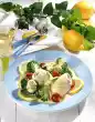 Grease the quiche dish (22 cm Ø). Roll out 3/4 of the shortcrust pastry on a lightly floured work surface until round (approx. 24 cm Ø). Line the mould with the pastry and press the edges firmly together. Prick the pastry base several times with a fork. Arrange carrots, spring onions and trout fillets in the tin. Pour the egg icing over everything Bake in a preheated oven (electric range: 200 °C/ convection oven: 175 °C/ gas: level 3) for 25-30 minutes. Roll out the remaining dough on a floured work surface. Cut out fish on the dough, place on a baking tray lined with baking paper. Whisk 1 egg and brush the fish with it. Remove quiche from oven, bake fish at the same temperature for 8-10 minutes. Remove the quiche from the pan, spread the trout caviar on top and garnish with dill. Cut the quiche into pieces. Serve with the pasta fish