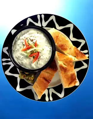 Add onion, garlic and cucumber. Season with salt and pepper. Garnish with tomato slices if desired. Turkish flat bread tastes good with it