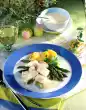 Bring the sauce to the boil, stir the pepper cheese into the sauce. Add the sauce thickener and bring to the boil again briefly while stirring. Peel the eggs, cut them into six and add them together with the tuna to the hot sauce. Wash the chives, dab dry and cut into small rolls, except for a little garnish. Arrange rice and tuna ragout on plates. Sprinkle with chives and garnish