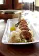 For the sashimi, cut off 8 thin slices of bread (use the rest of the bread for other purposes). Cut out or cut slices of bread as circles as you like. Fry in hot oil until crispy brown on each side.