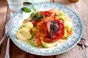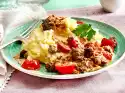 Season the meat with salt and pepper and take it out. Fry mushrooms and onions in the frying fat for about 5 minutes. Deglaze with wine and cream, bring to the boil. Add meat and sugar snap peas, boil everything down for about 3 minutes. Season to taste with salt and pepper. Serve the shredded meat and rice.