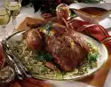 Season to taste with 3 tablespoons of orange juice, salt, pepper and clove powder. Remove the roast and let it rest. Pour frying stock through a sieve and fill up to 1/2 litre with water. Add remaining orange juice and liqueur and bring to the boil. Bind with sauce thickener and season with salt and pepper. Arrange red cabbage and roast on a plate and serve as desired, sprinkled with orange peel strips and garnished with orange wedges and parsley. Serve with croquettes
