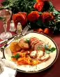 Cut turkey breast into 12-16 slices. Drain the tuna. Wash the parsley, pluck the leaves from the stalks. Put something aside for garnishing. Puree fish, salad cream, parsley and lemon juice.