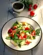 Fry the onions and mushrooms in the frying fat until golden brown. Dust with flour. Add stock and cream and bring to the boil briefly. Season with lemon juice, salt and pepper. Put one half of the mushroom sauce in a flat casserole dish. Spread the schnitzel on top. Spread the rest of the mushroom sauce on top. Grate cheese and sprinkle over it. Bake in the preheated oven (electric cooker: 200 °C/ gas: level 3) for about 40 minutes. Clean, wash and quarter the tomatoes.