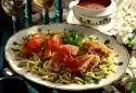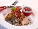 Spread the rest of the mushroom sauce on top. Grate cheese and sprinkle over it. Bake in the preheated oven (electric cooker: 200 °C/ gas: level 3) for about 40 minutes. Clean, wash and quarter the tomatoes. Remove seeds and cut the flesh into small cubes. Wash parsley, dab dry and chop. Sprinkle both over the escalopes before serving