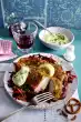 Prepare rice in boiling salted water according to package instructions. Crumble cornflakes. Whisk eggs in a deep dish. Wash meat, dab dry and season with salt and pepper. Turn escalopes one after the other in flour, egg and cornflakes.