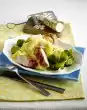 Season the sauce with salt, pepper and a little nutmeg and set aside. Prepare pasta in boiling salted water according to package instructions. Wash the meat, dab dry and lightly flatten between cling film. Season cutlets with salt and pepper. Whisk the egg. Turn meat first in flour, then in egg and finally the oat flakes. Heat the oil in a pan and fry the escalopes for about 5 minutes on both sides until golden brown. Cut the cress off the bed. Bring the sauce to the boil and add half of the cress. Drain the noodles.