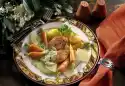 Scald tomatoes with boiling water and rinse with cold water. Peel the skin, cut the flesh into pieces and add to the vegetables. Wash the flesh, dab dry. Season with salt and pepper.
