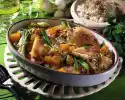 In the meantime peel or clean and wash the carrots and broccoli. Cut carrots into thin slices, broccoli into florets. Peel and chop onion. Wash the herbs, pluck the needles or leaves from the stems