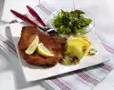 If necessary, halve or quarter the potatoes and fry in 1-2 tbsp. hot oil for 8-10 minutes until golden brown. Add thyme in between and fry. Season with salt and pepper. Arrange everything