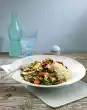 Peel, wash and slice the carrots. Clean, wash and slice the leek. Peel and finely dice onions and garlic. Wash the meat, dab dry and chop coarsely