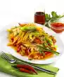 Clean, wash and cut the spring onions into rings. After another 10-15 minutes, mix into the vegetables and cook until done. Arrange everything