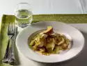 Add the prepared apple and sauerkraut to the turkey leg 15 minutes before the end of the cooking time. Garnish with parsley as desired.