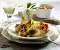 Fill medallions, tomatoes and onions into a greased casserole dish. Stir cream, dried herbs and starch until smooth. Season with salt and pepper and pour over the medallions. Grate cheese over them. Bake in the preheated oven (electric cooker: 175 °C/circulating air: 150 °C/gas: level 2) for 25-30 minutes, garnish. Spätzle taste good with it