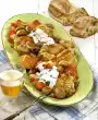 Add chanterelles and bacon approx. 3 minutes before the end of the frying time. Season to taste again. Meanwhile put 1/8 litre water and cream in a pot and warm it up. Add the contents of the bag "Sauce Hollandaise" while stirring and bring to the boil. Add green pepper and stir in. Place medallions on the chanterelles and fried potatoes. Spread the sauce over them and bake in a preheated oven (electric cooker: 200 °C/ gas: level 3) for about 10 minutes. Serve garnished with parsley