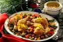 Wash the meat, dab dry and cut into pieces. Clean and wash spring onions and cut them into pieces. Wash and halve cherry tomatoes. Leave out bacon in a pan without fat and take it out.