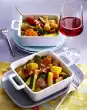 Refine the shredded meat with cream, season with salt, pepper and basil. Add tomatoes, fold in and carefully warm up in the hot ragout. Inz