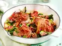 Cook the pasta in plenty of boiling salted water according to the instructions on the packet. Approx. 10 minutes before the end of the braising time, stir mustard into the goulash. Season to taste with salt and pepper. Serve everything.