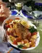 Pour the pumpkin on a sieve and drain. Add potatoes, leek, green pepper and pumpkin to the ragout, season again with salt and pepper. Arrange the ragout in a bowl and garnish with parsley leaves as desired.