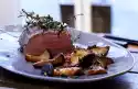 Add pineapple juice and 2-3 tbsp. water, bring to the boil briefly. Stir in cream. Season to taste with salt and pepper. Heat up meat in it. Arrange everything and garnish if necessary