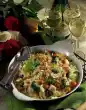 Shortly roast almonds in the frying fat, dissolve the roasting mixture with sherry, reduce, pour in the poultry stock and bring to the boil briefly. Arrange cabbage and roulades with roast jus on plates.