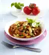 Heat 1 tsp. oil. Sauté onion and zucchini cubes in it. Sweat tomato paste briefly. Add the chopped tomatoes and 5 tbsp. water, bring to the boil. Season with stock, salt, pepper and basil strips.