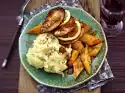 Wash the lemon, grate dry and cut into slices. Arrange schnitzel and spaetzle with lemon on plates.
