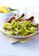Fold up and fix with wooden skewers. Heat butter, add chopped chard stalks, sauté briefly, add 100 ml broth, bring to the boil and stew for about 10 minutes. Add the rest of the mangold greens, warm up and season to taste with salt, pepper and mace.