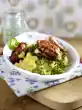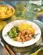 Season salad again. Arrange on a plate with the escalopes. Garnish as desired with lemon and chervil.