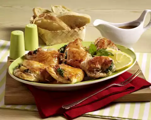 Season to taste with salt and pepper. Arrange cutlets on a plate, garnished with some sauce, lemon slices and parsley. Add the rest of the sauce separately. Bread tastes good with it.