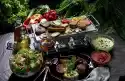 Stir in green pepper and season to taste with salt and pepper. Dab chops a little bit and put them on the preheated grill with the skewers. Fry for ten minutes while turning, sprinkle with salt and coloured pepper.