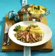 Season with salt and pepper and chill. Heat 2 tablespoons of oil in a pan. Brown the meat all around, take it out, season with salt and pepper. Sauté the mushrooms and herb seitlings in the frying fat.