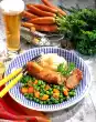 Clean, wash and cut the aubergine into pieces. Sprinkle with salt and leave to stand until the vegetables begin to "draw water". Cut the aubergine into pieces. Cut the sausage into slices. Peel and slice the onion. Dab aubergine cubes dry with kitchen paper and steam in hot oil while turning for about 8 minutes.