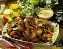Cover with the remaining pastry sheets. Sprinkle with remaining sheep's cheese and bake in a preheated oven (electric range: 175 °C/ convection oven: 150 °C/ gas: level 2) for 40-45 minutes until golden brown. Garnish with mint.