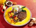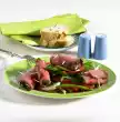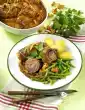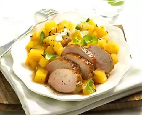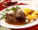 Remove the fillet. If necessary, dissolve the meat with a little water and pour it into the turnip. Season to taste with salt and pepper. Cut the fillet open. Garnish with turnip vegetables, stock and a dash of sour cream. Add the purée.