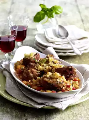 Heat the fat in a pan, turn the ciabatta crumbs in it and roast them lightly. Remove from the pan. Put the beans on a sieve, rinse under cold water and drain. Put the beans into the tomato pan, bring to the boil and season to taste with salt and pepper.