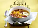 Sauté onions and garlic in hot frying fat. Stir in tomato paste and thyme and sweat briefly. Add tomatoes, stock and cream, bring to the boil and simmer for about 5 minutes. Roughly chop the ciabatta bread.