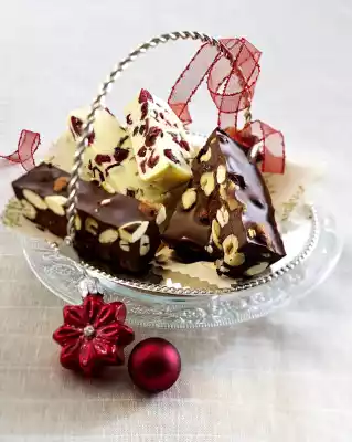 Line the bottom of a square tin (approx. 15 x 15 cm, edge approx. 4 cm high) with baking paper. Mix nuts, raisins and chocolate, place in the mould and leave to set in a cool place (approx. 3 hours)