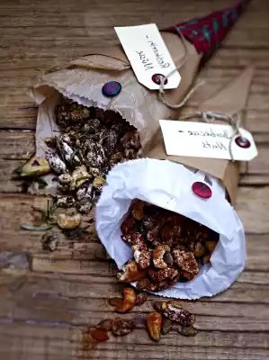 Mix half of the nut and kernel mixture with the rosemary and egg whites, the other half with the barbecue egg whites. Line a baking tray with baking paper. Spread the nut mixes one after the other on a baking tray lined with baking paper and roast for another 15 minutes at the same temperature, let it cool down. Let the finished nuts cool down and pack them as airtight as possible