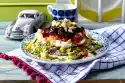 For the couscous filling, pour 450 g of couscous with 450 ml of vegetable stock and leave to stand for about 5 minutes. Loosen the couscous with a fork and let it cool down. Wash and clean 2 sticks of leek and cut into slices of about 1 cm width.