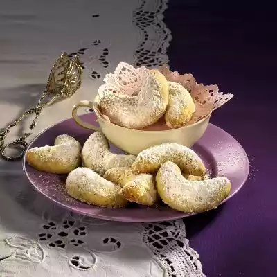 Place on a baking tray lined with baking paper. Bake in a preheated oven (electric cooker: 200 °C/ convection oven: 175 °C/ gas: level 3) for approx. 10 minutes, so that just the tips turn brown. Sift icing sugar and mix with remaining vanillin sugar. Carefully roll hot croissants in it. Let cool on a cake rack