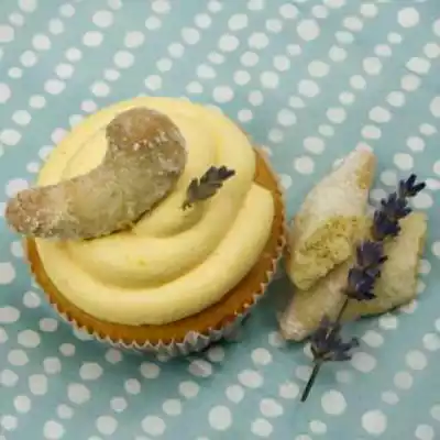 Then cut off slices of about 5 mm thickness from the roll and shape them into croissants. Since the croissants are part of the decoration, they should be just big enough to fit on a cupcake.