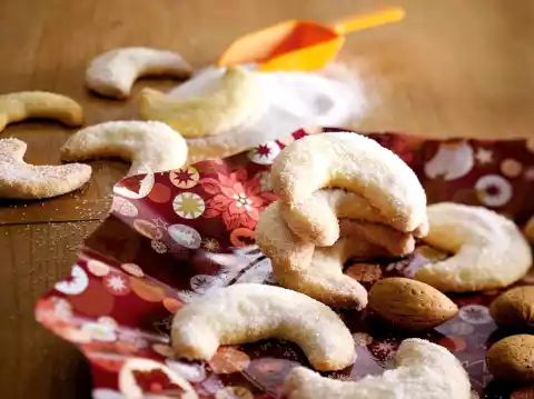 Line three baking trays with baking paper. Preheat oven (electric cooker: 175 °C/circulating air: 150 °C/gas: level 2). Form the dough into 3-4 rolls (approx. 1.5 cm Ø). Cut each roll into 5 cm long pieces and shape into croissants.