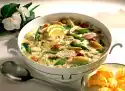 Put the rest of the marinade aside. Close abdominal opening, tie legs and wings together with kitchen string. Place the chicken breast side down on an oiled baking tray. Roast in the preheated oven (electric cooker: 200 °C/ convection oven: 175 °C/ gas: level 3) for 1 1/4-1 1/2 hours. Now and then coat with the marinade. Turn the chicken halfway through the cooking time. 20 minutes before the end of the cooking time, place the rice in boiling salted water and allow to swell for 20 minutes. Put the vegetables in a pan and fry over high heat for 4 minutes. Fry over medium heat for 4-6 minutes. Drain rice if necessary. Chop the peanuts and fold into the rice. Arrange chicken, rice and vegetables.
