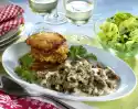Wash and chop the herbs. Wash cutlets, dab dry and tap flatter. Season with salt and pepper. Peel, wash and roughly grate the potatoes. Stir in egg. Season with salt, pepper and nutmeg.