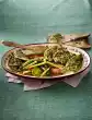 Peel, wash and halve the potatoes and cook in boiling salted water for about 20 minutes. Wash parsley, shake dry, pluck leaves from the stalks, leaving 4 nice leaves aside. Cut the rest into fine strips. Wash lemons hot, rub dry and grate the peel