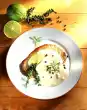 For the salad, clean and wash the radishes and cut them into fine slices. Peel onion and cut into rings. Season vinegar with salt, pepper and sugar. Fold in 4 tablespoons of oil. Chop the chervil. Wash the sprouts and let them drip off. Mix prepared salad ingredients and marinade. Heat clarified butter in a pan. Fry the escalopes in it while turning over medium heat for about 8 minutes. Season with salt, pepper and lemon juice.