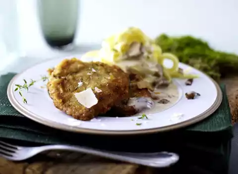 Bring 3-4 l salt water (approx. 1 teaspoon salt per litre) to the boil. Season cutlets with salt and pepper. Whisk eggs. Turn the schnitzel in 3-4 tbsp. flour first, shake off excess flour. Then pull through the eggs, let them drain.
