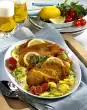 Cook broccoli in salted water for about 6 minutes. Fry shallots and celery in hot fat. Deglaze with white wine. Add the sauce and warm it up (not boiling). Season with salt and pepper if necessary. Add kidneys to the hot sauce. Arrange potatoes, broccoli, tomatoes and kidneys on plates