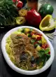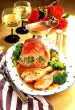 Heat the remaining fat and toss the spinach in it, season with salt and pepper. Fold the cheese into the rice. Arrange veal knuckle slices on the spinach. Spread the sauce over it. Garnish with grated lemon.